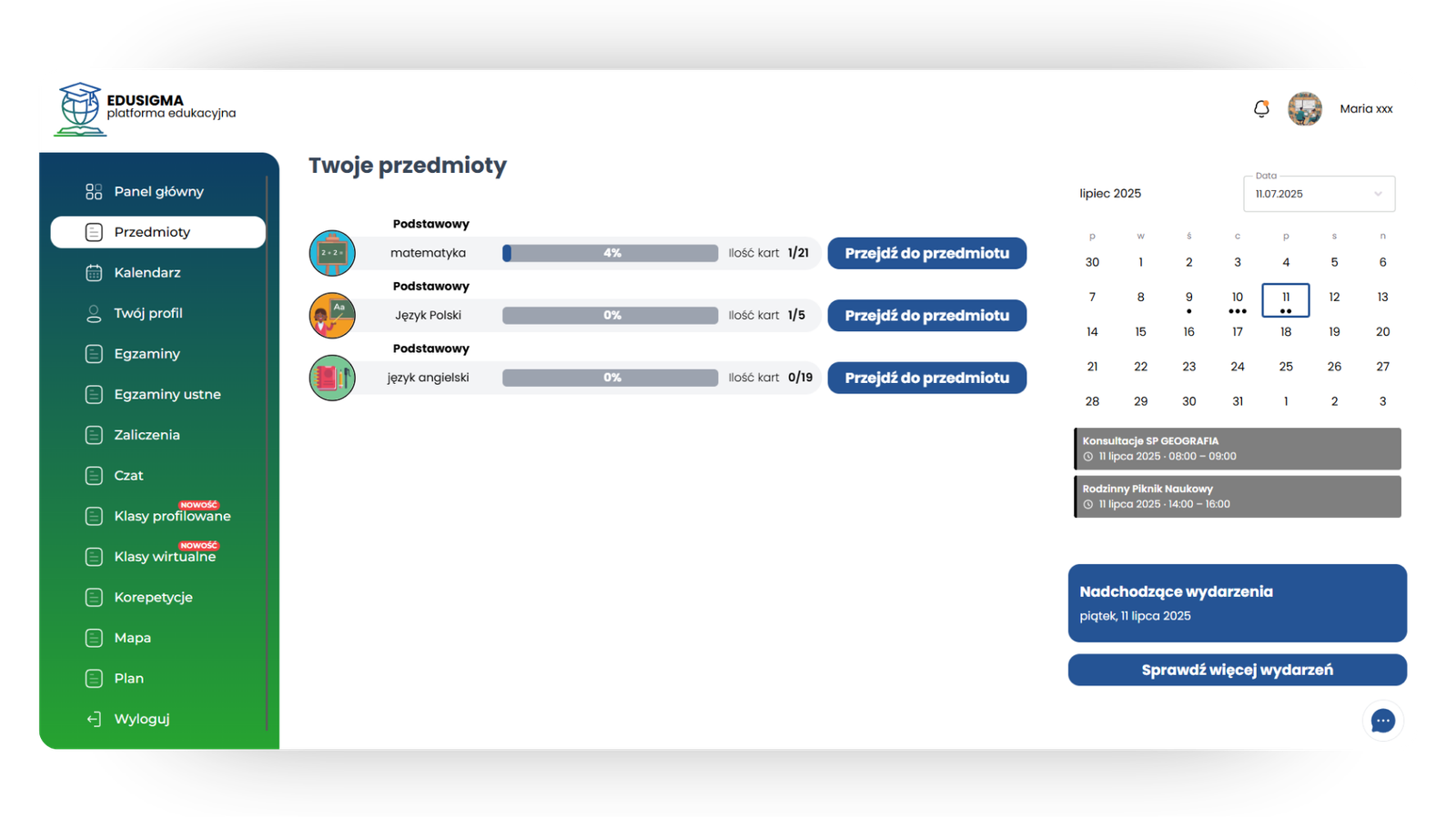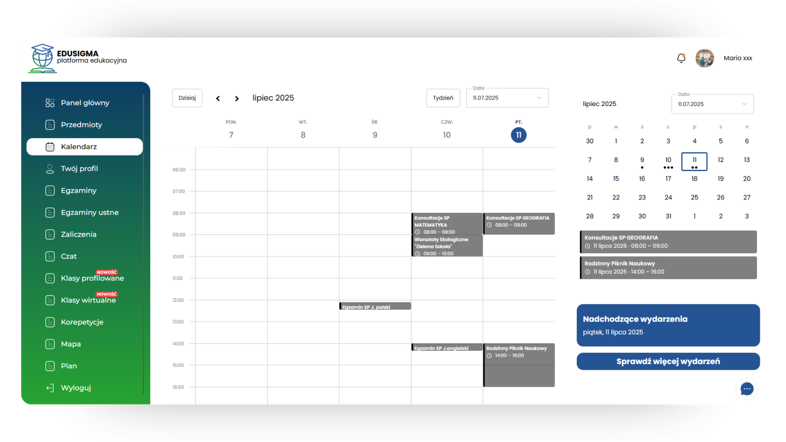 Kalendarz EDUSIGMA to nie tylko terminy — to narzędzie do samodzielnej organizacji nauki, przypomnień i wydarzeń.