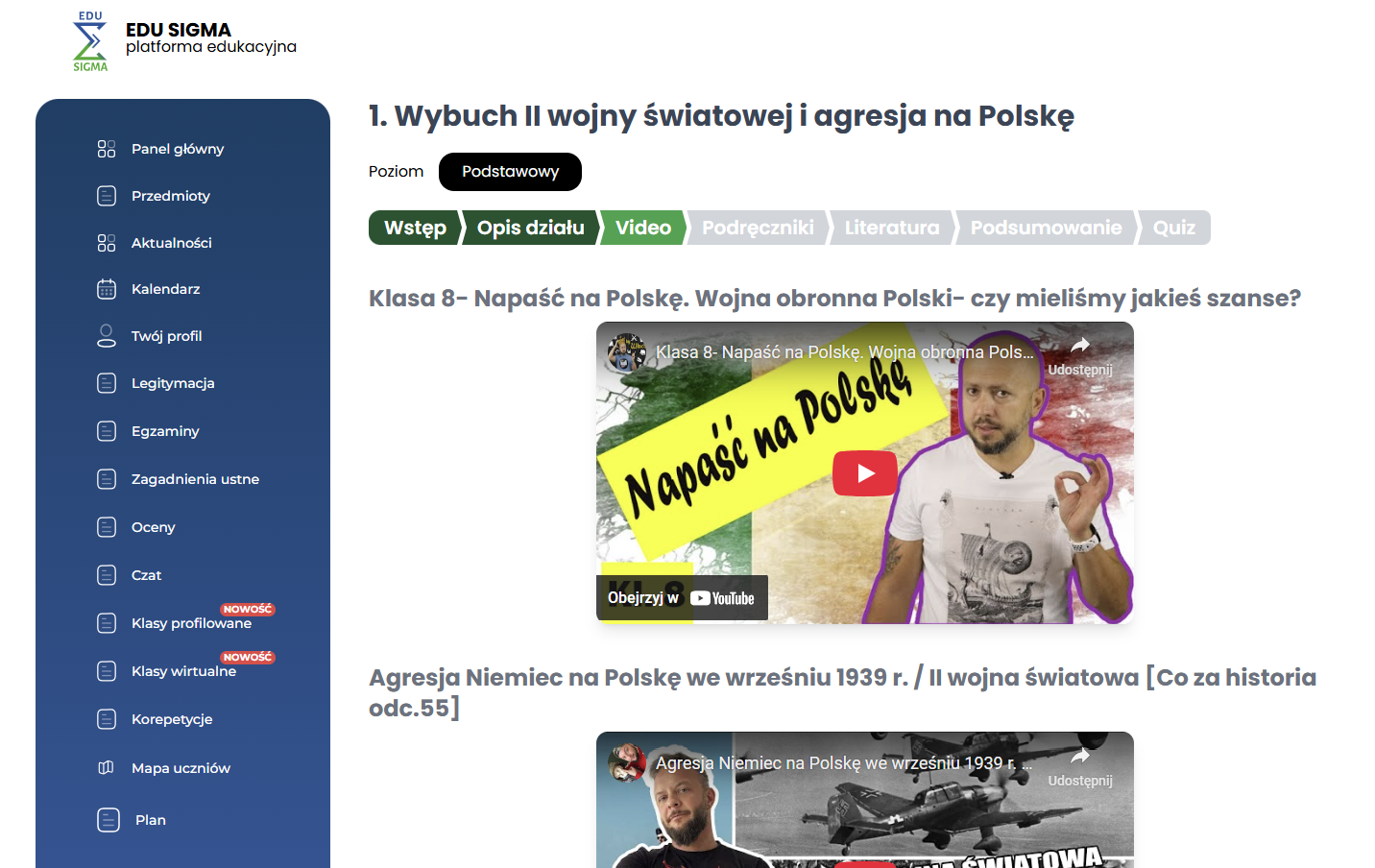Edukacja w XXI wieku wymaga nowoczesnych metod. Dlatego w każdym dziale umieszczone są minimum trzy starannie wybrane filmy edukacyjne sprawdzone pod względem merytorycznym przez nauczycieli danego przedmiotu. Materiały wideo są dopasowane tematycznie, atrakcyjnie i łatwe w odbiorze – nawet przy trudniejszych zagadnieniach.