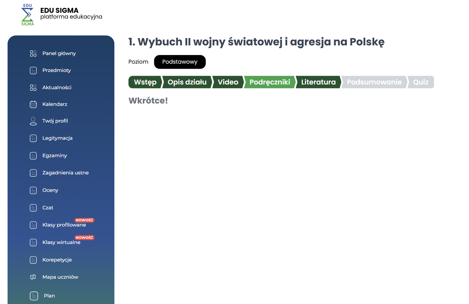 W kolejnej zakładce wkrótce pojawią się podłączone podręczniki do każdego działu, co pozwoli jeszcze bardziej usystematyzować wiedzę i mieć wszystko w jednym miejscu.
