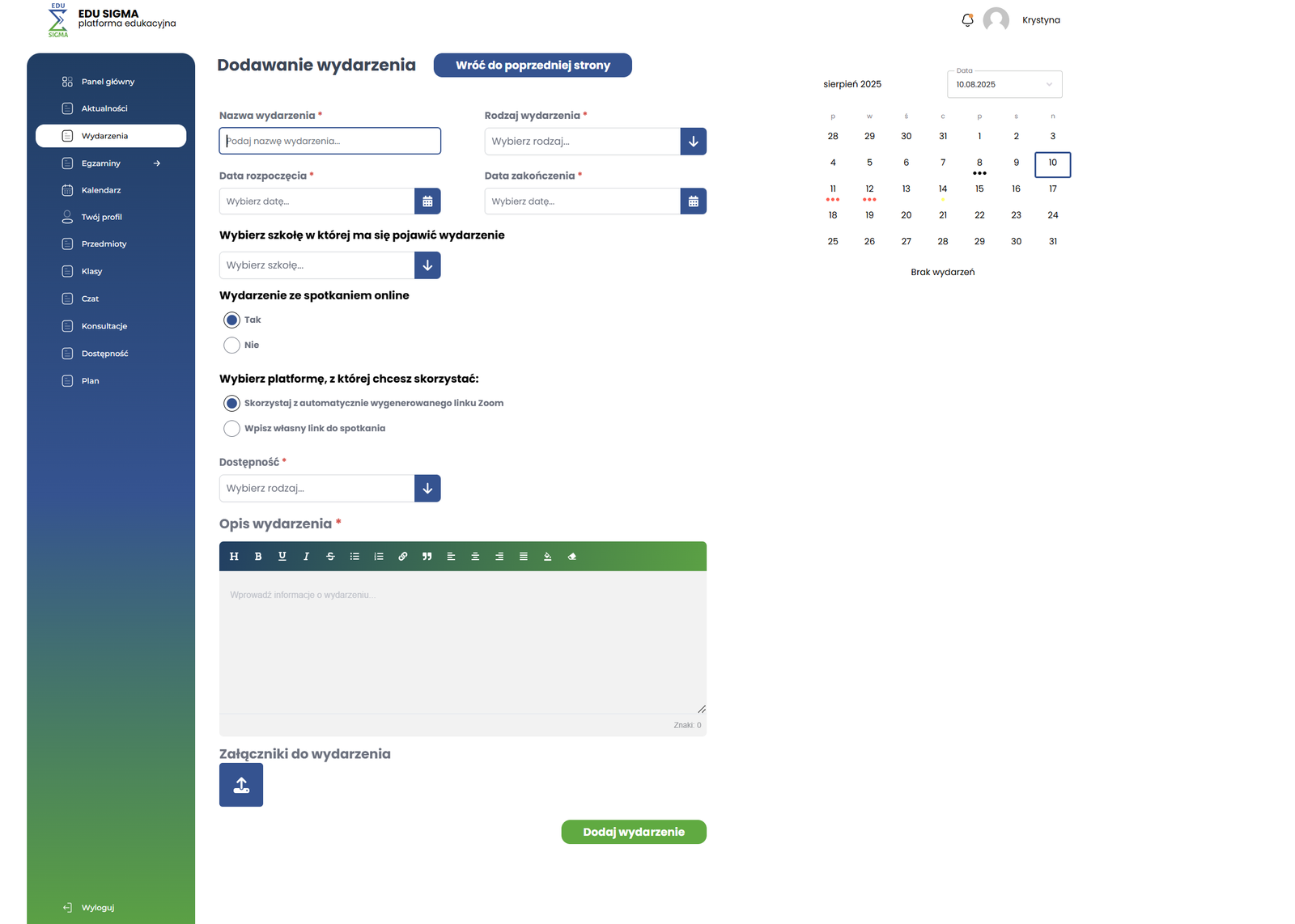 - opis wydarzenia oraz załączyć plik, np. ćwiczenia czy materiały przygotowawcze.