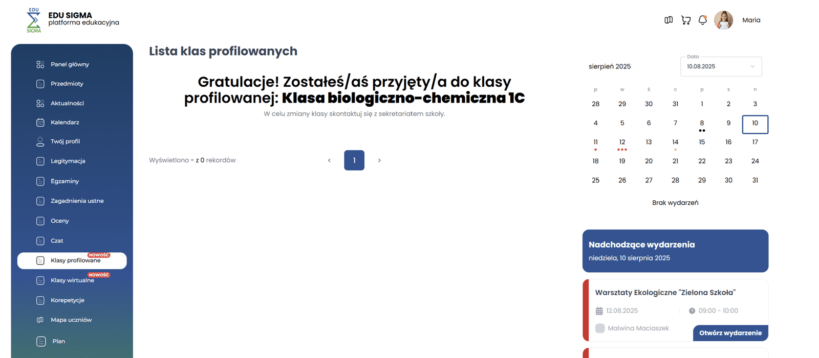 - Przeglądać dostępne profile klas – np. matematyczno-fizyczny, biologiczno-chemiczny, humanistyczny i inne