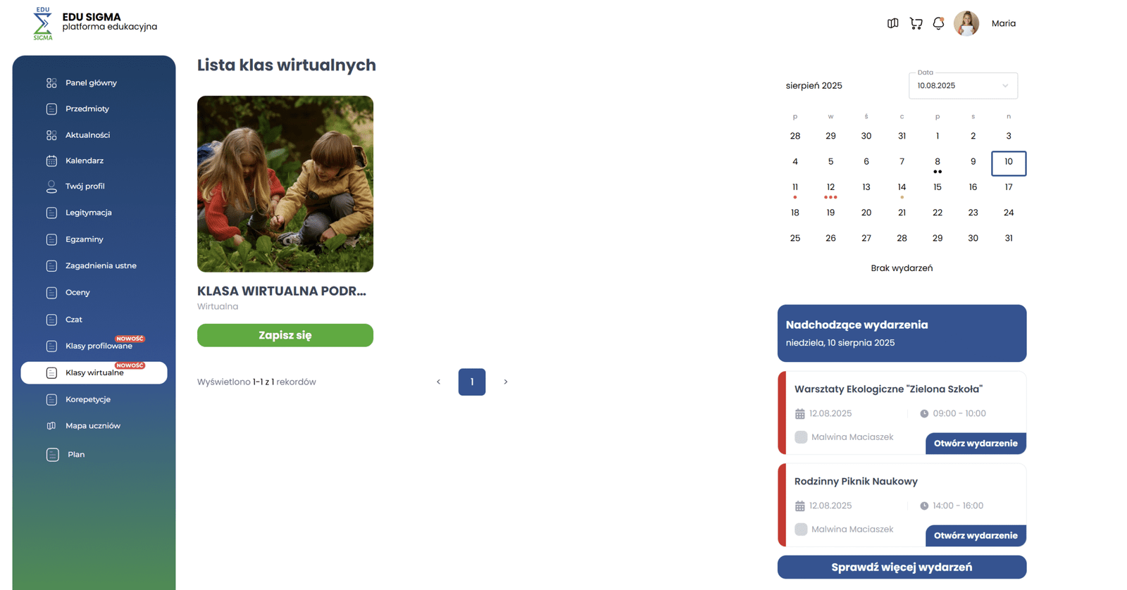 - Przeglądać listę klas wirtualnych – np. „Technik żywienia”, „Grafika komputerowa”, „Programowanie w praktyce”