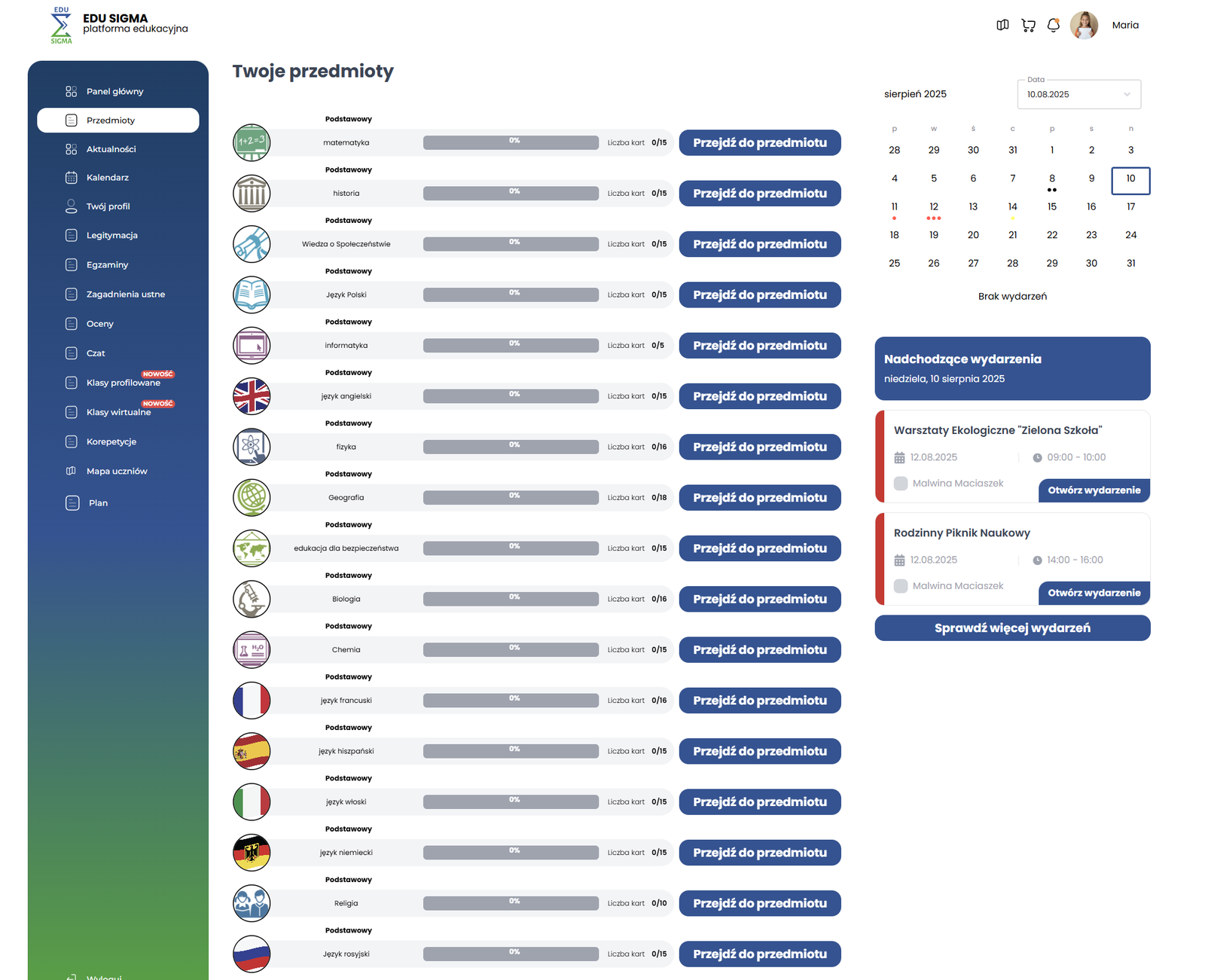 - Zobaczyć wszystkie dostępne karty pracy z danego przedmiotu.