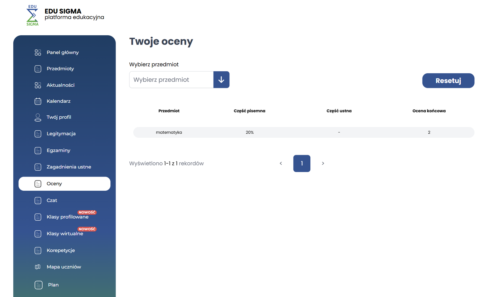 W tej zakładce znajdziesz wszystkie swoje oceny z przedmiotów – w jednym miejscu, przejrzyście i wygodnie.