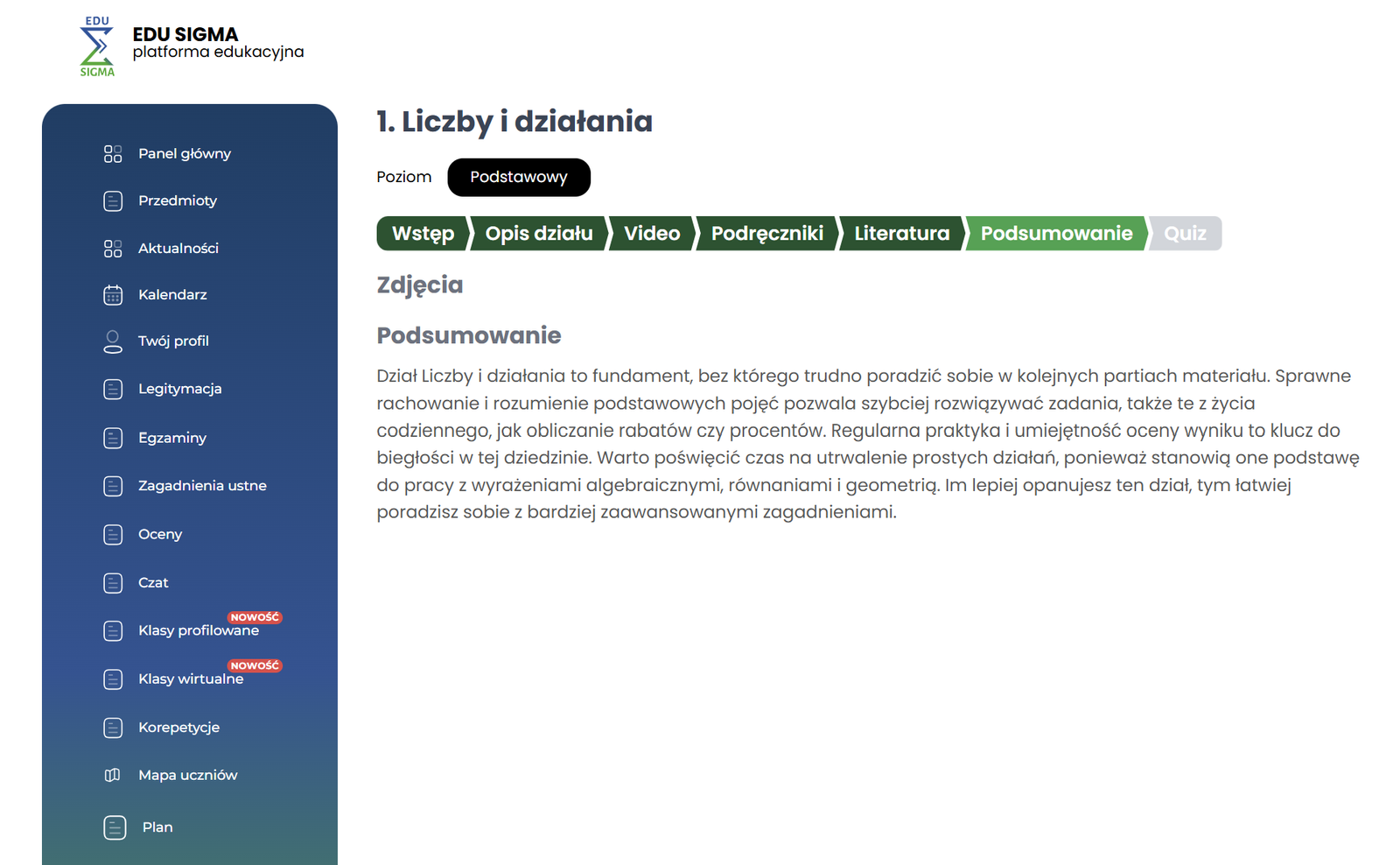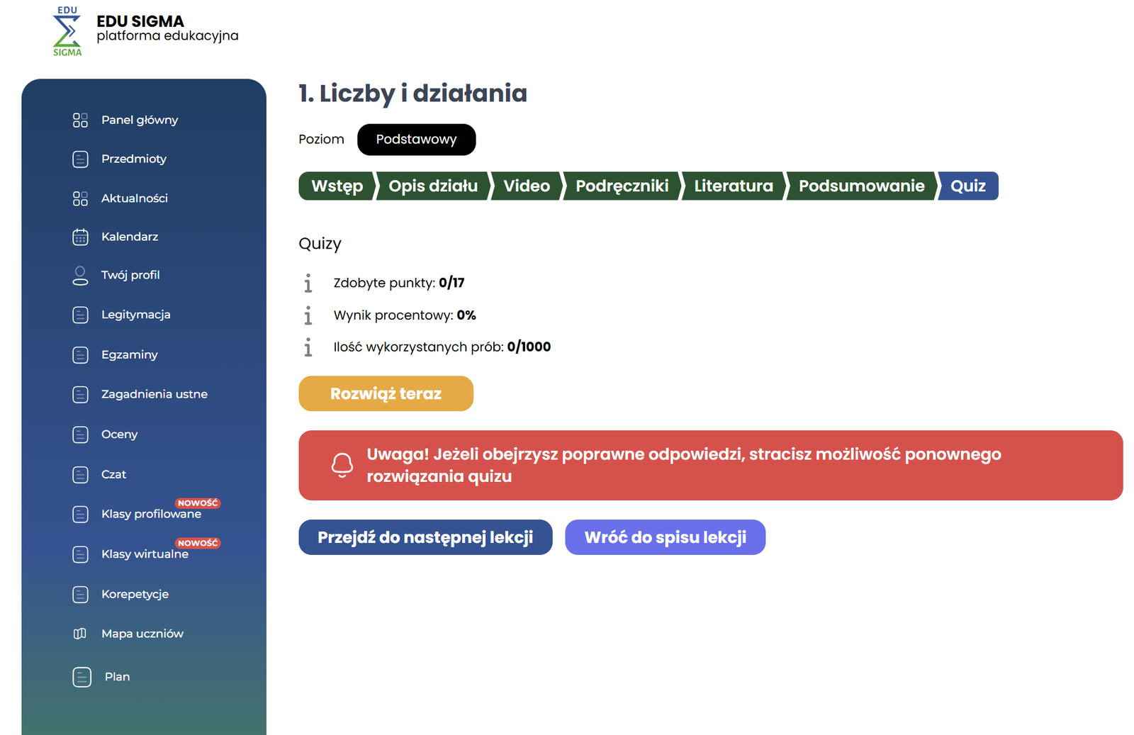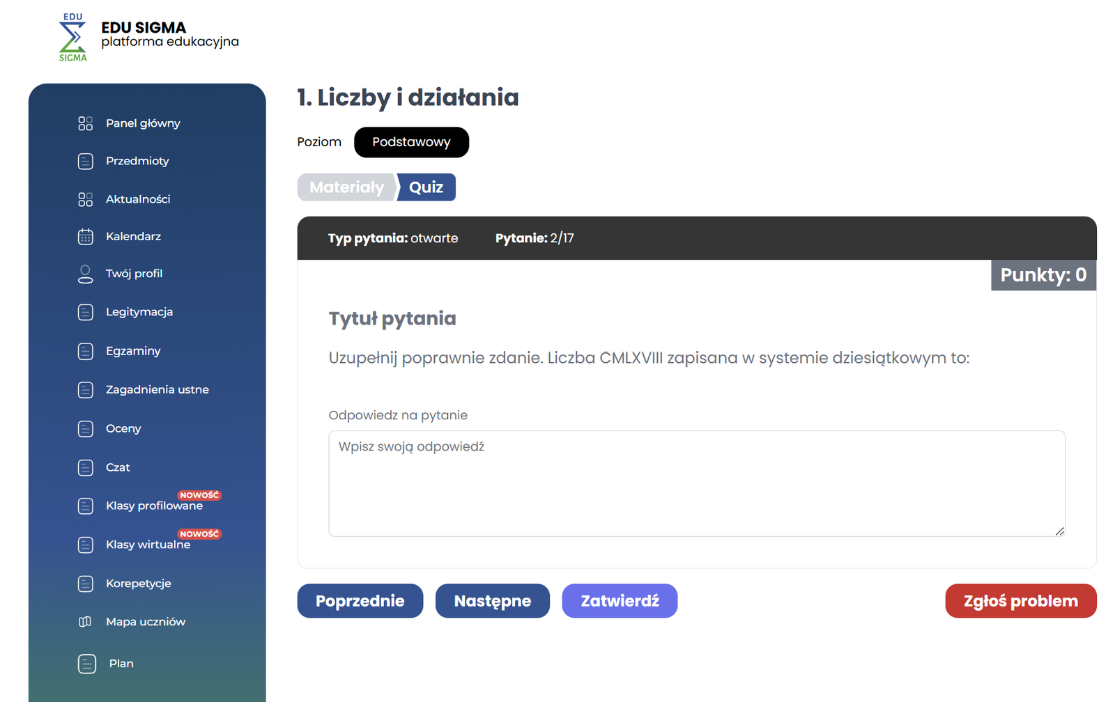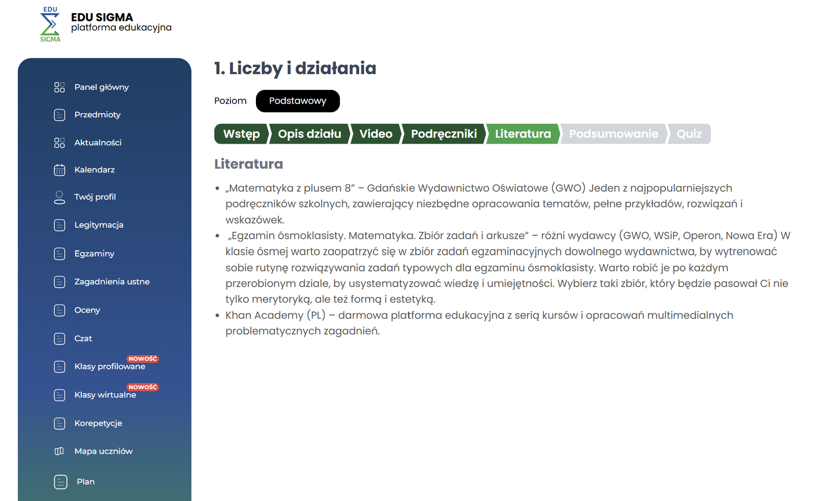 - Rozszerzony – dla uczniów profili rozszerzonych