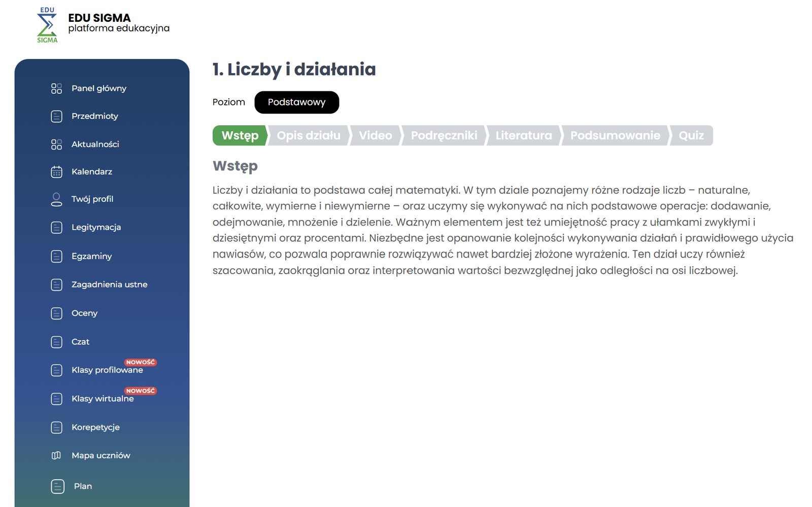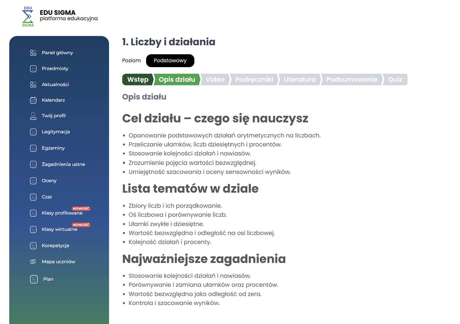 Opis działu – najważniejsze zagadnienia, cele i zakres lekcji.