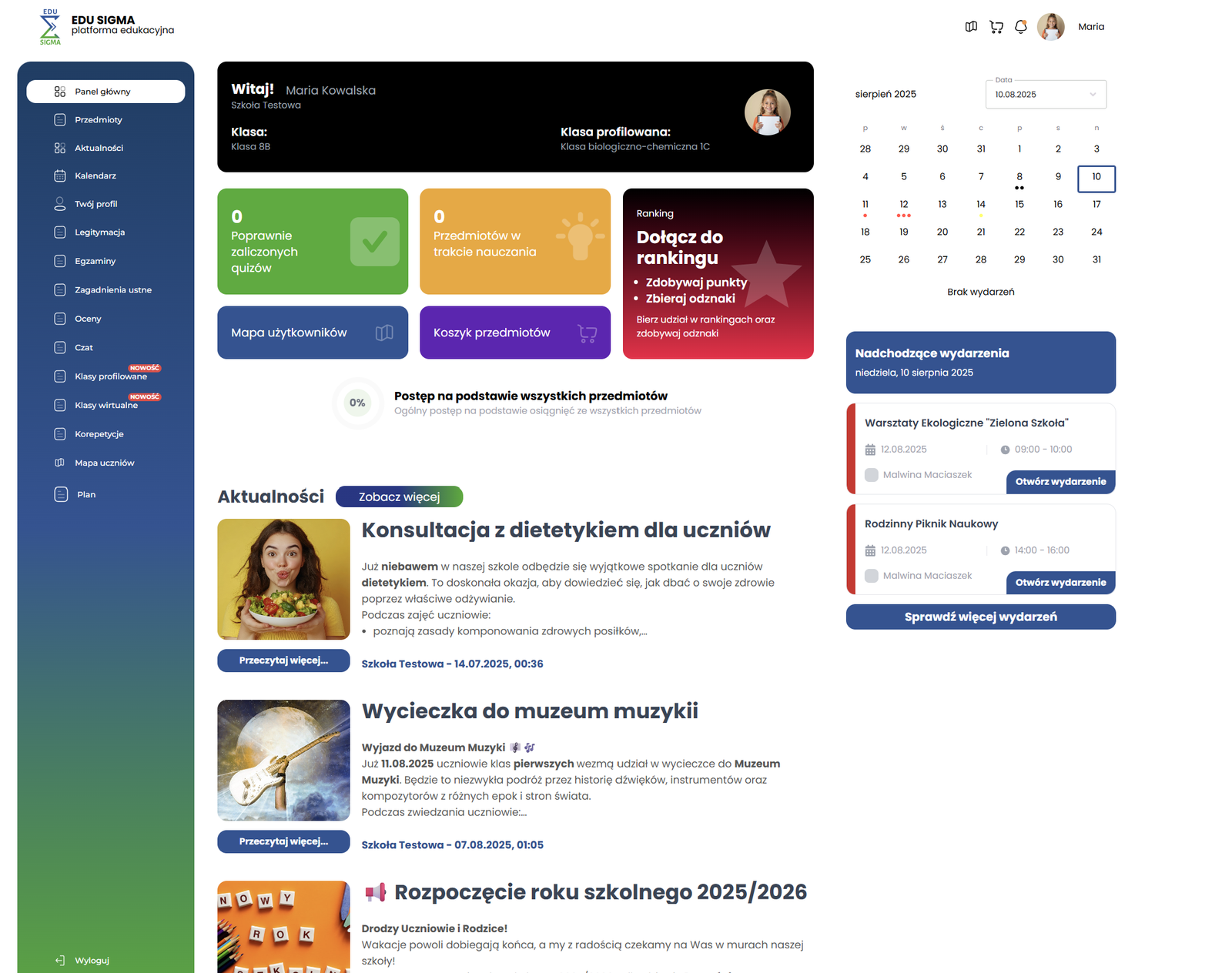 - Wydarzenia szkolne – np. wycieczki, konkursy, dni tematyczne.